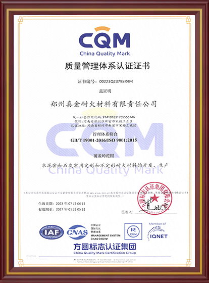 真金耐火榮譽資質(zhì)